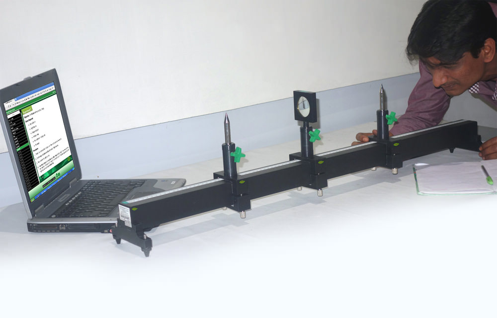 Nvis Optics Bench is a versatile system designed to provide a comprehensive introduction to physics and science laboratories. It clarifies all the basic concepts of light. Setup includes an optics bench Concave, convex lenses and mirrors of different focal length. This Optics Bench provides the basic knowledge about properties of light such as Refraction, Reflection, Dispersion and Total internal reflection. Experiments such as determination of focal length of concave, convex lenses and mirrors can also be performed.