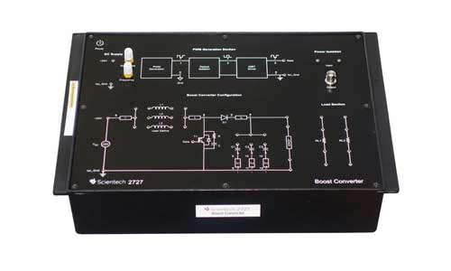 Scientech 2727 is a compact and user friendly learning platform which is very useful for students to understand the concept of PWM generation technique, and Boost Converter topology on various load configurations. It is also helpful for understanding the converter output on various filter configurations. Platform explains PWM generation technique, Boost converter operation, and power isolation circuit.
