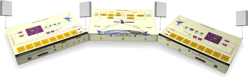 The system allows user to observe and study the concepts of telecommunication such as digital modulation, scrambling, and frequency conversion as well as other concepts related to digital satellite communications.