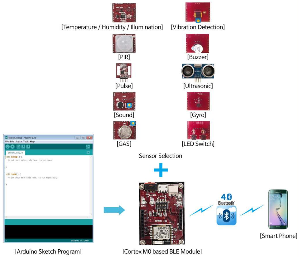 - Thu thập thông tin mô-đun cảm biến và điều khiển bộ truyền động cho công nghệ cơ bản IoT cho mỗi mô-đun bằng cách cung cấp chức năng thực hành mô-đun đơn vị bằng phần sụn.
