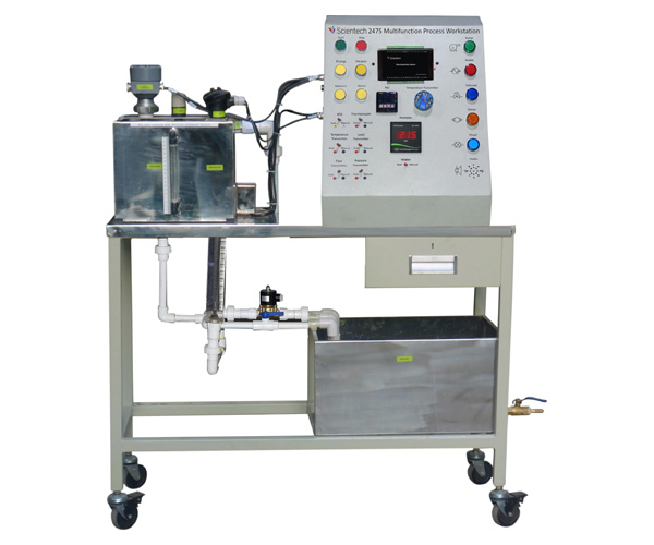 Nền tảng quy trình đa chức năng của Scienceech 2475 là một thiết lập hoàn chỉnh để đo lường quá trình thông qua bộ điều khiển hai điểm (ON / OFF) và ba điểm (PID). Đây là nhà máy Quy trình công nghiệp với bốn quy trình Nhiệt độ, Mức chất lỏng, Áp suất và Lưu lượng mà chúng ta có thể đo được thông qua Hệ thống thu thập dữ liệu dựa trên Ethernet có ADC 24 bit và đầu vào / đầu ra kỹ thuật số. Nhà khoa học 2475 cũng cho chúng ta tiếp xúc với các thành phần công nghiệp như Bộ truyền mức, Bộ truyền nhiệt độ, Bộ truyền áp suất, Bộ truyền lưu lượng bánh xe, Thông số, DAQ, Bộ điều khiển PID và Cảm biến nhiệt độ như RTD và Cặp nhiệt điện. Người dùng có thể tìm hiểu cách hiệu chỉnh, cài đặt, vận hành và điều chỉnh các công cụ để kiểm soát quá trình. Tất cả các thành phần điện được kết nối với bảng điều khiển để cho phép sinh viên đo tín hiệu và kết nối các thiết bị với nhiều cấu hình điều khiển khác nhau bao gồm vòng lặp mở (điều khiển thủ công) và vòng lặp kín (điều khiển PID, điều khiển ON / OFF).