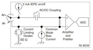 NI‑9234 có thể đo các tín hiệu từ các cảm biến áp điện tích hợp (IEPE) và các cảm biến không IEPE như gia tốc kế, máy đo tốc độ và đầu dò gần. NI‑9234 cũng tương thích với các cảm biến TEDS thông minh. NI‑9234 cung cấp dải động rộng, kết hợp ghép điện AC / DC có thể lựa chọn bằng phần mềm và điều hòa tín hiệu IEPE. Các kênh đầu vào đo tín hiệu đồng thời. Mỗi kênh cũng có các bộ lọc khử răng cưa tích hợp tự động điều chỉnh theo tỷ lệ mẫu. Khi được sử dụng với phần mềm NI, mô-đun này cung cấp chức năng xử lý để theo dõi tình trạng như phân tích tần số và theo dõi.