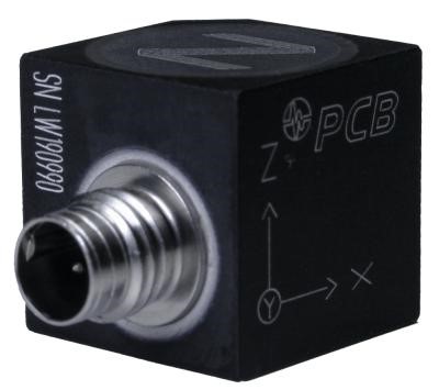 Triaxial, high sensitivity, ceramic shear ICP® accel., 100 mV/g, 0.5 to 5k Hz, aluminum hsg, 4-pin conn., TEDS 1.0
