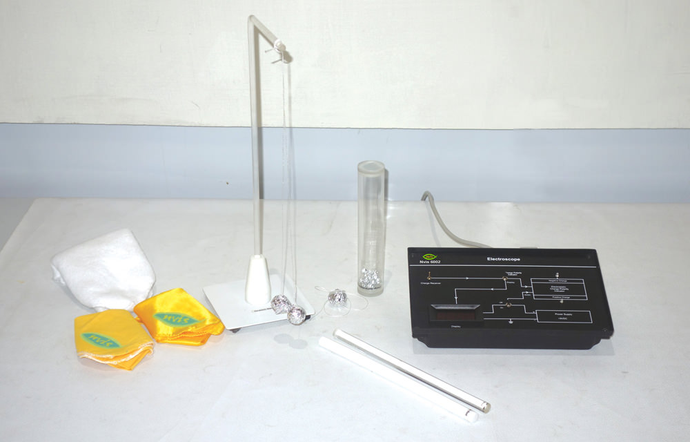 Nvis 6002 Electrostatic Lab is a versatile training system to be used in the laboratories. It introduces the basic concepts of electrostatics like charging by friction, induction and conduction. With this system static charge polarity can be easily determined. This system is provided with a Digital Electroscope, Pith ball pendulum, Charge Demonstration Tube. A set of different rods and clothes are provided to study the electrostatic charges by their different combinations.