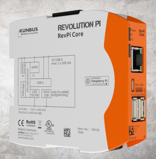 RevPi Core được trang bị Mô-đun tính toán Raspberry Pi. Mô-đun tính toán về cơ bản bao gồm hai IC: Broadcom BCM2835 SoC với RAM 512 Mbyte và bộ nhớ Flash 4 Gbyte eMMC.