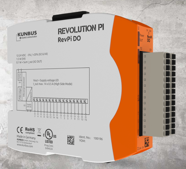 Sử dụng đầu ra kỹ thuật số – mô-đun RevPi DO mô-đun cơ sở Revolution Pi của bạn có thể được mở rộng bằng 16 đầu ra kỹ thuật số. Mô-đun mở rộng này được kết nối với mô-đun cơ sở của bạn bằng phích cắm PiBridge trên cao.
