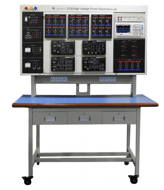 Phòng thí nghiệm điện tử điện cao áp của Scientech 2700 là một bàn làm việc thử nghiệm nhỏ gọn, sẵn sàng để sử dụng. Trong bàn làm việc cụ thể này, có nhiều ứng dụng và thử nghiệm khác nhau của Power Diode và SCR trên bàn làm việc với cấu hình tải khác nhau.