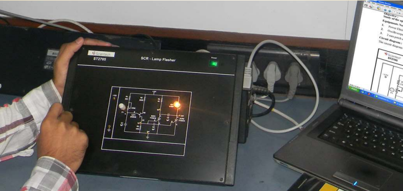 Phòng thí nghiệm điện tử công suất cao áp của Scientech 2700 bao gồm các nguyên tắc và hoạt động của mạch điều khiển thyristor một pha và ba pha.