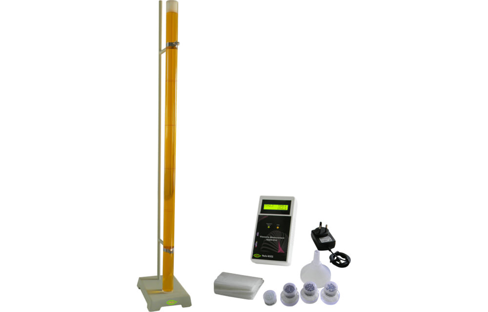 Nvis 6022 Viscosity Measurement Apparatus demonstrates viscosity experiment and elicit the interest of students in the field of fluid mechanics. This apparatus verifies Stoke’s law and helps us to understand the motion of object inside the fluid. Here, falling sphere method is used to determine the viscosity of liquid. This method describes a general procedure for the determination of not only the viscosity but the density of the liquid as well. This activity enables us to observe the relative viscosity and density of liquids like glycerin, castor oil, mustard oil etc. Our set-up covers both manual and automatic viscosity determination.