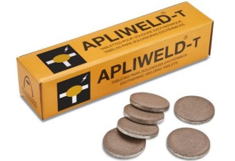 Apliweld-T là bước phát triển mới trong công nghệ hàn hóa nhiệt trên thế giới, chúng được sản xuất và định hình ở thể rắn dạng viên hay miếng với kích thước nhỏ gọn. Viên thuốc hàn hóa nhiệt này là giải pháp thay thế hoàn hảo cho vật liệu hàn truyền thống dạng bột (chứa trong lọ hoặc bịch, hộp). Viên thuốc hàn Apliweld-T có 2 phiên bản khác nhau về kích thước và khối lượng như sau: AT-020N : Hộp viên thuốc hàn 0,9 kg: Gồm 20 viên thuốc hàn, mỗi viên 45g. Kích thước hộp 52 x 52 x 220mm Kích thước viên nén : dày 2mm, đường kính D 43mm AT-021N : Hộp viên thuốc hàn 2 kg: Gồm 20 viên thuốc hàn, mỗi viên 100g. Kích thước hộp 66 x 66 x 260mm |