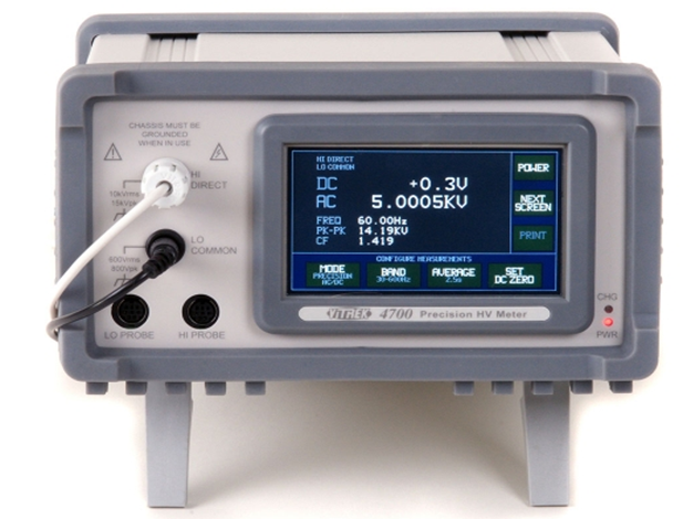 | Thiết bị đo cao áp Vitrek 4700 Precision High Voltage Meter | Có độ chính xác cao; Model: 4700 -Tính năng: +Thiết bị đo điện áp trực tiếp đến 10kV (AC và DC), có thể mở rộng dải đo 35kV, 70kV, 100kV, 150kV bằng cách thêm phụ kiện đầu đo. +Tích hợp màn hình màu cảm ứng, hiển thị đồng thời điện áp AC và DC, các cổng máy in USB, Ethernet, serial; -Thông số kỹ thuật: Điện áp đầu vào tối đa: 10KV DC, 10KV AC RMS (đo trực tiếp); Trở kháng đầu vào: 110 Mega ohm +Độ chính xác đo DC (trực tiếp): 0.03% số đọc + 0.03V, độ phân giải đo DC: 10mV +Độ chính xác đo AC (Trực tiếp): 0.12% số đọc + 0.1V, độ phân giải đo AC: 10mV Đầu đo HVL-70 |