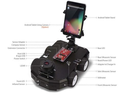 - Adopts Arduino, an open hardware platform for controlling robot sub-systems such as motors and sensors